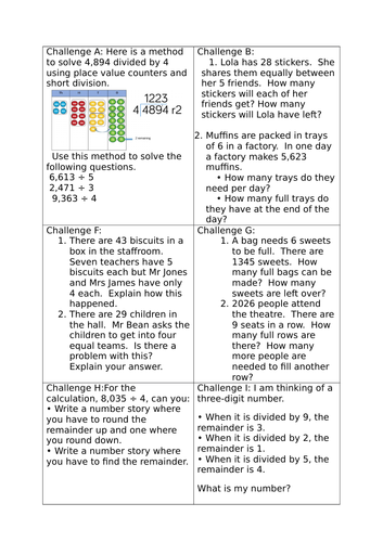 Division problems with remainders | Easy Mathematic An unlimited supply of worksheets for division with remainders (grades 3-5)! Some of the worksheets practice finding the remainder using mental math, some are for long division. The worksheets have a mixture of division problems — some have a remainder and some are exact divisions. Easy: Divisors from 3 to 6 Vie See more